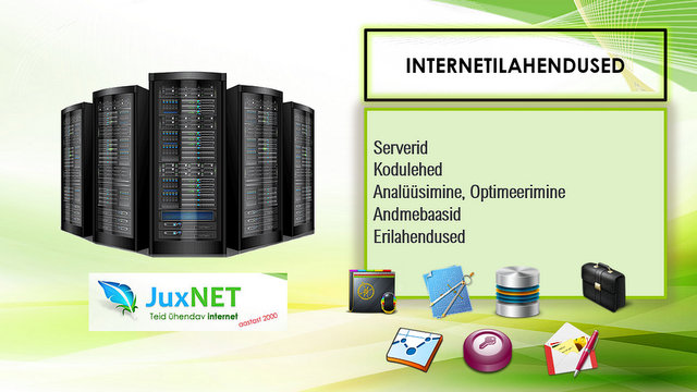 Internetilahendused Prindi JuxNET kaubamärgi all pakume teenuseid ühise nimetaja all: INTENETILAHENDUSED SERVERIDANALÜÜSIMINEOPTIMEERIMINEANDMEBAASIDERILAHENDUSED Teenus KODULEHED on ajutiselt peatatud! Teenust osutavad ettevõtted: JuxNET OÜ või Jux MTÜ